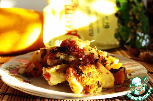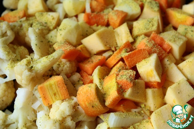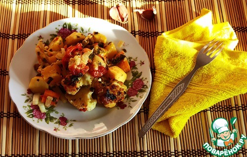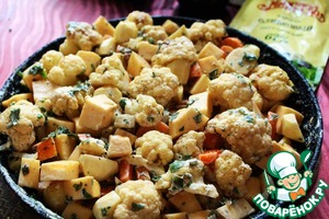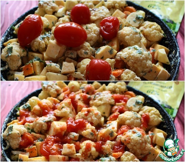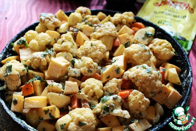 Выкладываем все в чугунную сковороду либо в жарочную форму.