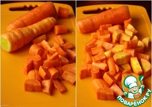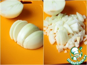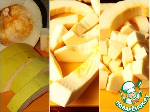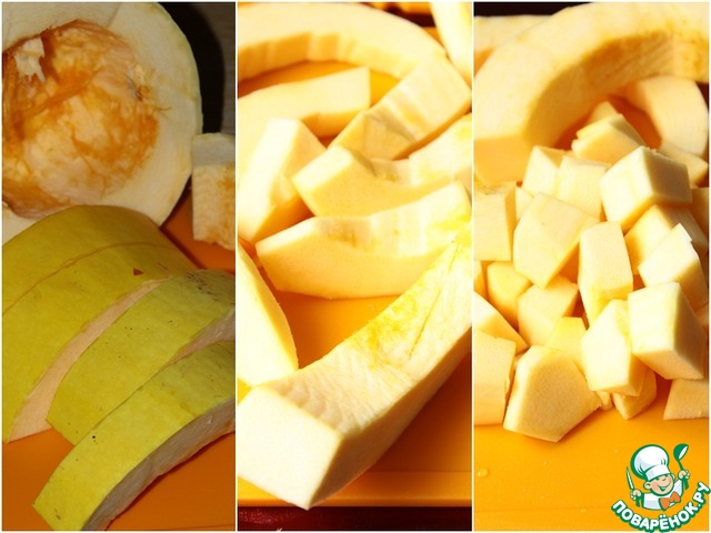 Кабачок нарезаем кольцами, удаляем семечки и кожуру, рубим на кубики.