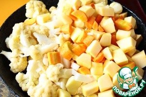 Цветную капусту очистить, отделить от сердцевины и разобрать на соцветия.