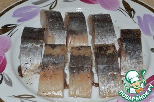 Полить приготовленной смесью куски сельди. Накрыть пищевой пленкой и убрать в холодильник на 3 часа.