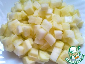 Яблоко очистить от кожуры, удалить сердцевину и нарезать небольшими кубиками.