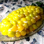 Сочное яблоко - это третий слой (майонез кладем немного). И последний слой - тертый сыр. Смазываем оставшимся майонезом и прижимаем салат, придавая ему форму наподобие виноградной грозди.