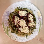 Украшаем печень, выкладываем сверху горку луковых колец.