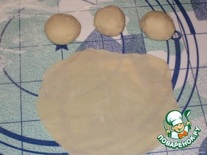 Улиту чуть приплюснуть рукой и немного раскатать, до толщины в 1 см. Если тесто немного порвется, ничего страшного.