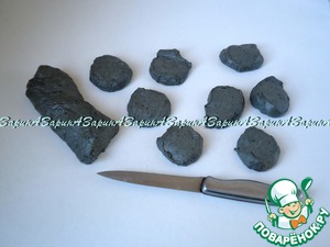 Каждому кусочку придать продолговатую форму, скатав их м/у ладоней. Затем приплюснуть в лепешку.