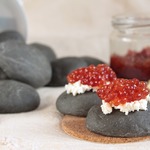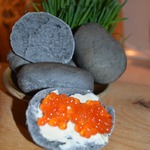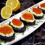 На остывшие булочки выложить по столовой ложке сырно-майонезной массы. Сверху выложить по десертной ложке икры. Закуска готова, можно подавать к столу!