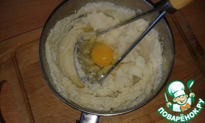 Картофель немного остудить, размять в пюре, добавить крахмал, яйцо и перемешать
