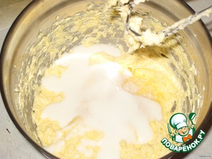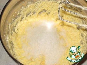 Маргарин взбить с сахаром.
