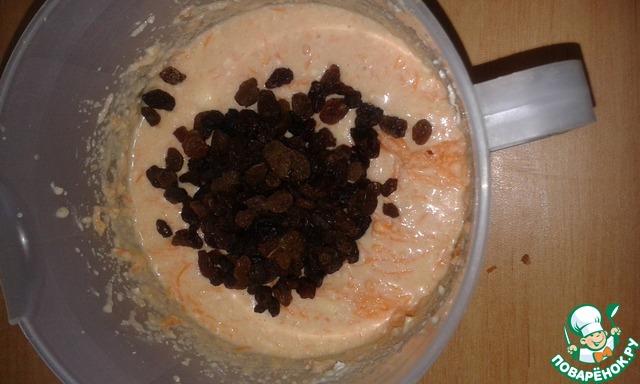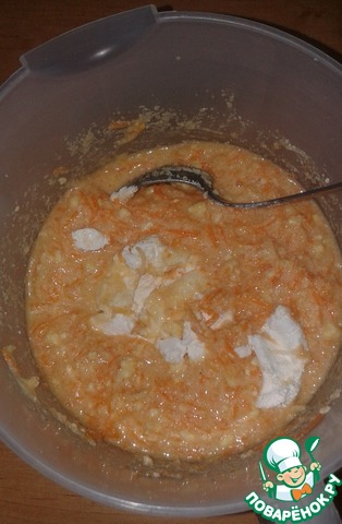 Добавить морковь и яблоко в тесто и перемешать