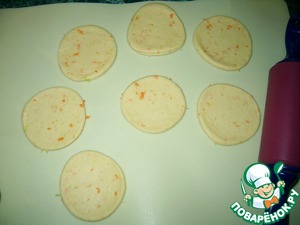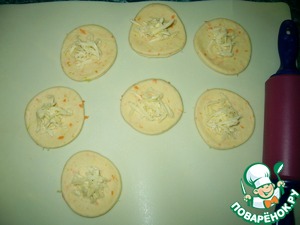 Тесто раскатать толщиной 3 мм, вырезать кружочки.