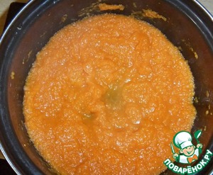 Слить воду. Превратить тыкву в пюре, добавить бульон.