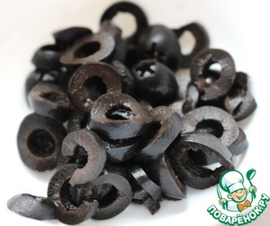 Маслины нарезать кружочками.