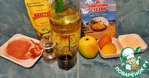 Свинину нужно отбить как следует, чтобы мясо стало тонким и в него легко было завернуть яблочко. Сначала свинину нужно подмариновать, для чего мы делаем простой, но вкусный маринад из2 ст. л. майонеза " Махеевъ", 2 ст. л. соевого соуса и немного чёрного свежесмолотого перца.