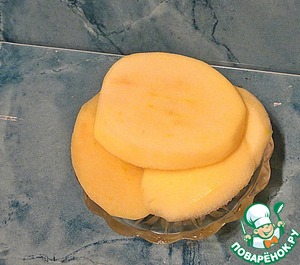 Яблоко (обязательно антоновку, потому что оно очень ароматное), почистить от шкурки и срезать слайсы толщиной примерно 5 мм.