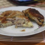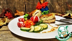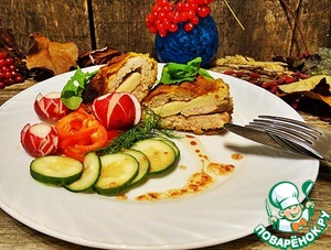 Яйцо взбить венчиком, но не солить, потому что маринад достаточно солёный. нашу свиную котлетку обваляем сначала в муке, потом искупаем во взбитом яйце и как следует обваляем в панировочных сухарях.