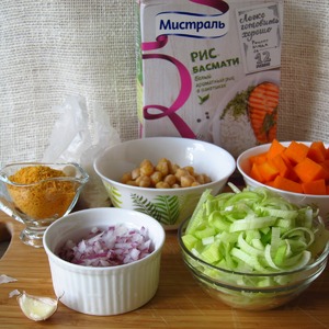 Ингредиенты для «Плов с тыквой и тефтелями из нута»: