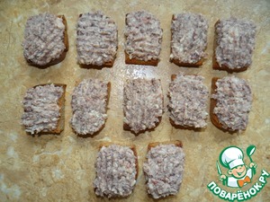 С помощью вилки покрыть все тосты рыбной начинкой;