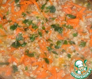 Добавляем зелень в готовую начинку. Перемешиваем.