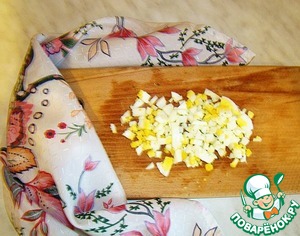 Отваренные заранее яйца мелко сечем.