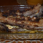 Перед запеканием даем немного стечь, если мясо планирую на бутерброды, то просто кладу на противень, смазанный подсолнечным маслом (очень легко), само мясо ничем не смазываю вообще (хотя кто любит специи, можно и смазать). Если Пасхальный вариант, шпигую чесноком, прикрываю фольгой и в духовку.