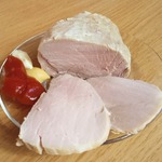 [+4]Взяла за основу ваш рецепт и изменила исходя из своих предпочтений. Кусок окорока примерно 1кг, может чуть меньше с вечера залила 1,5л воды, в которой растворила 3 ст.л соли и оставила в холодильнике до обеда следующего дня. Потом вынула, промыла, нашпиговала чесноком и обмазала всем тем, остатки чего хотела закончить (горчица, хрен и специй чуток). Завернула в фольгу и на 1,5ч в духовку. Температуру не скажу, очень старая плита. Вынула, перенесла на другую фольгу, остудила в комнате, потом в холодильнике. Подала как нарезку вместо колбасы и прочего. получилось в меру солено и специи не перебивали вкус. По консистенции достаточно сухая и плотная. Буду пробовать разные варианты приготовления, но этап замачивания в рассоле оставлю обязательно. Спасибо за совет!