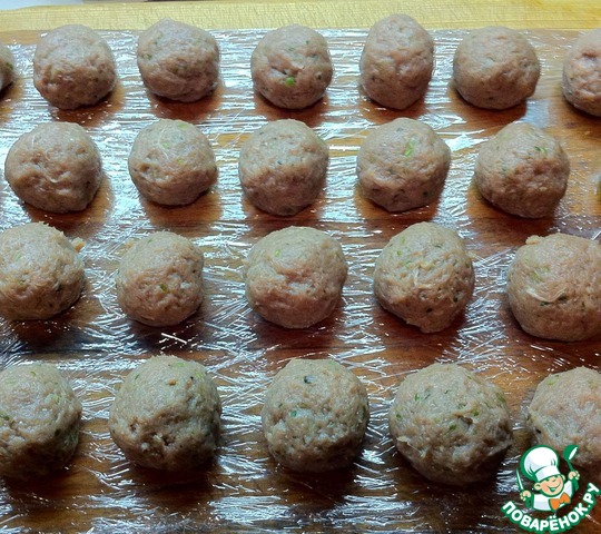 Сформовать из фарша шарики, размером с грецкий орех. Накрыть плёнкой и убрать в холодильник.