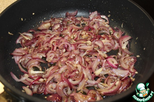 - Лук красный (крупного размера (у меня 5 мелких луковиц)) — 3 шт