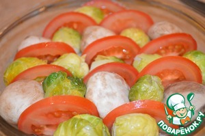 Простое, легкое блюдо из запеченых овощей и грибов. При желании брюссельскую капусту в блюде можно заменить на брокколи.