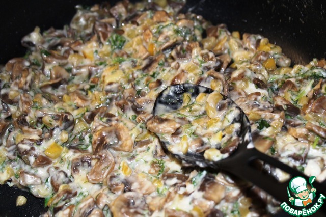 Затем добавляем сметано-мучную смесь и готовим до загустения.