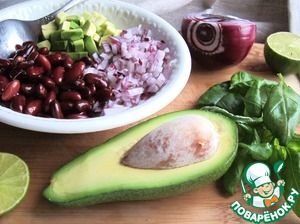 Для салата авокадо и лук мелко нарезать, смешать с фасолью, рубленным базиликом. Приправить солью и черным перцем, заправить соком лайма и оливковым маслом (или ароматным подсолнечным).