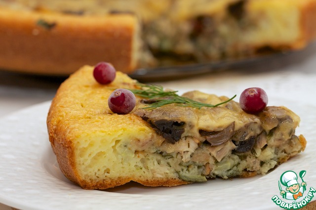 В оригинальном рецепте помещичьего пирога тесто дрожжевое. Я хотела сделать пирог быстро, да ещё, чтобы было много сочной начинки и мало теста, но чтобы оно было нежным. Рецепт теста взяла с "заливных" пирогов, но тут добавила небольшую "изюминку". В общем, получилось очень сочно, сытно, вкусно, как раз для семейного воскресного обеда осенью.
