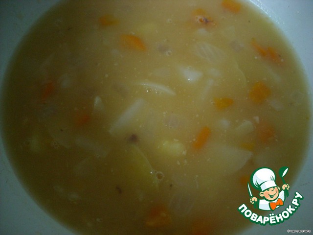 Заложить горох и варить до мягкости (можно сварить отдельно).