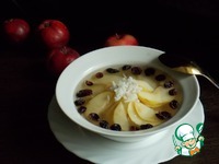 В тарелку положить рис, яблоки и изюм. Залить все густым сиропом, и можно подавать. |