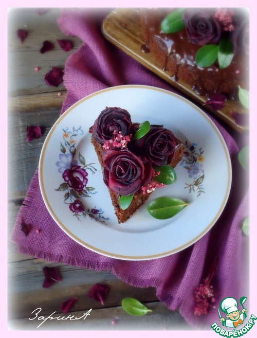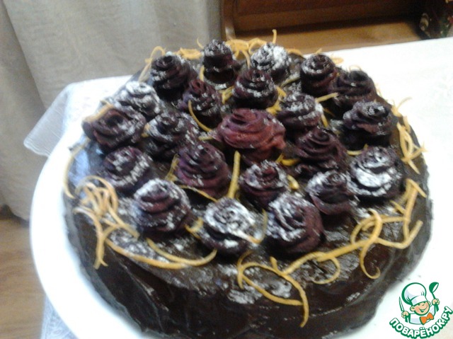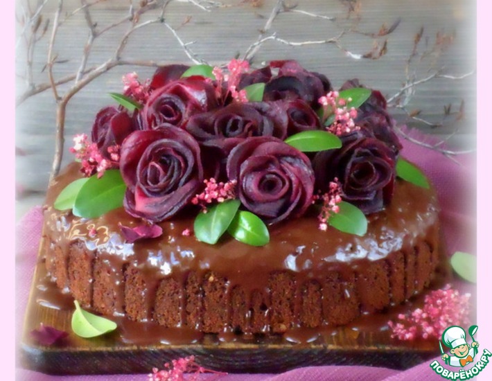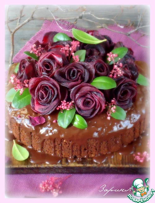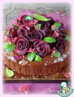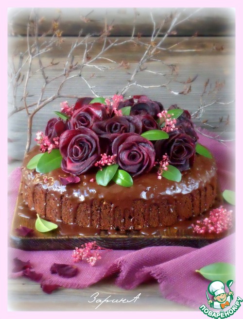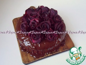Сверху на глазурь уложить розы. Поставить в холод на 10 минут, что бы глазурь застыла.