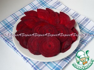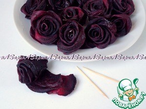 Для свекольных роз: Свеклу очистить и нарезать на тонкие пластины 1-2 мм толщиной. Если свекла крупная, то можно её разрезать на две части и таким образом нарезать на пластины.