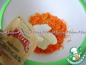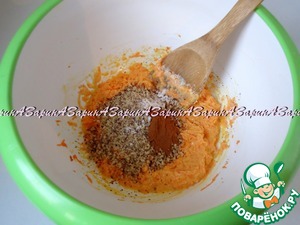 Соединить взбитые яйца с морковной смесью и аккуратно перемешать.