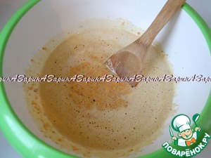 В отдельной миске взбить яйца с коричневым сахаром в пышную пену.