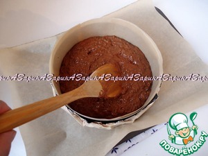Переложить тесто в заранее подготовленную форму d= 20 см. Я ничем форму не смазывала, только заселила дно пекарской бумагой.