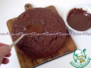 Оформление пирога: Шоколад с 1 ст. л. растительного масла растопить на водяной бане. Полить шоколадной глазурью пирог.