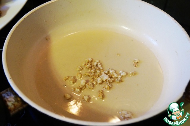 Куриный жир мелко режем и вытапливаем на сковороде до шкварок.