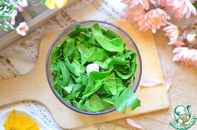 Свежий шпинат нарезать, положить в чашу блендера.