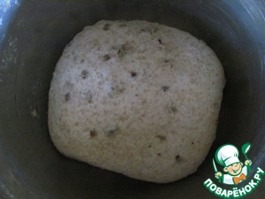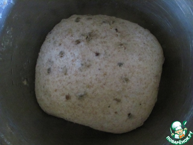 Смазать поверхность, руки и емкость (у меня дежа комбайна) маслом. Тесто растянуть-сложить, округлить и поставить на брожение. Брожение 1,5 часа. Растянуть-сложить один раз в середине брожения.