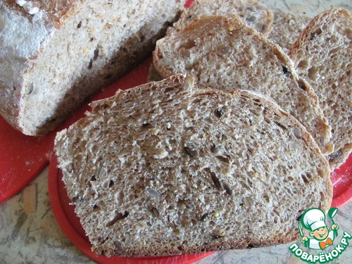 Что я могу сказать об этом хлебе? Если к нему можно применить слово"брутальный", так это он. Хлеб съедается в одно мгновение. На мой взгляд, очень полезный хлеб, глядя на его состав. Приступим.