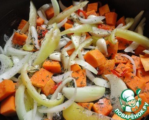Рецепт «Теплый тыквенный салат с брынзой и тимьяном»: