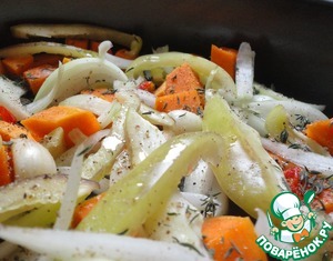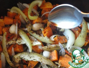 Вынимаем, поливаем бальзамическим уксусом, перемешиваем и отправляем в духовку еще на 15 минут.