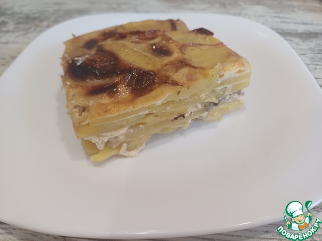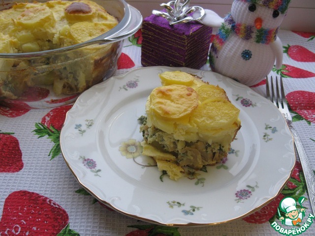 Необыкновенно вкусная и нежная запеканка-гратен из множества тонких слоев картошки, прослоенных жареными грибами, в ароматной сливочной заливке послужит прекрасным гарниром как на ужин, так и на праздничный стол.