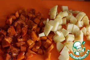 Яблоки и хурму очистить и нарезать средними кубиками.