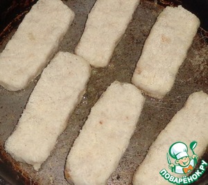 Палочки выкладываем на разогретую сковороду и обжариваем на растительном масле до золотистого цвета.