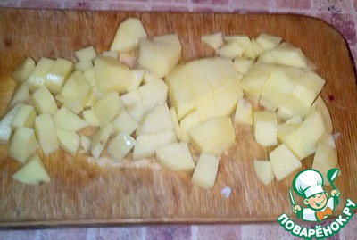 Нарезаем кубиками картофель.