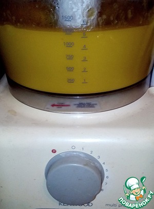 Переливаем в чашу комбайна и постепенно увеличиваем скорость до максимальной. На максимальной скорости оставляем комбайн на 3-4 минуты, пока все кусочки овощей не измельчатся.